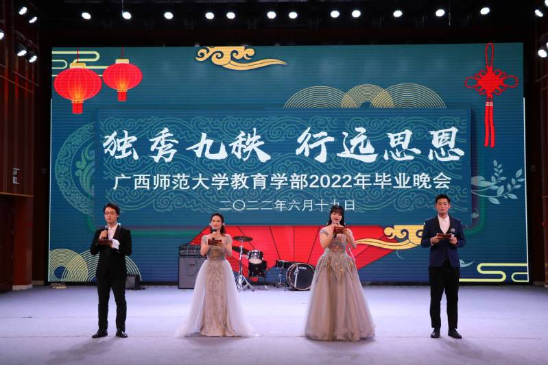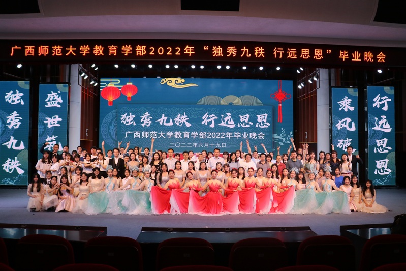 在喜迎90周年校庆之际,6月19日,教育学部于雁山校区音乐学院三楼综合厅举办2022年“独秀九秩 行远思恩”毕业晚会。校党委常委、副校长、教育学部部长孙杰远出席本次晚会,教育学部党政领导、教师代表、辅导员以及2022届毕业生、在校生代表等参加本次毕业晚会,晚会采用网络同步直播。