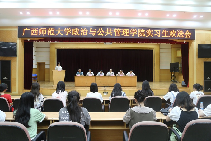 近日,广西师范大学政治与公共管理学院实习生欢送会在象山区政府三楼会议室、桂林魅力花园国际养老公寓会议室举行。象山区区委副书记李超,象山区区委常委、组织部部长陈浩,象山区政府部门、养老公寓负责人,学院党委主要负责人、行政相关负责人、公共管理系主任、团委副书记及全体实习生参与欢送会。