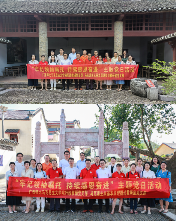 7月1日,学院行政教辅党支部、马克思主义基本原理教研室及科研团队党支部先后来到桂林市八路军桂林办事处灵川县路莫村军需物资转运站纪念馆、灵川县谭下镇山口村,联合开展“牢记领袖嘱托 持续感恩奋进”主题党日活动。通过参观纪念馆和乡村振兴示范点,教师党员收获颇丰,感悟良多,表示要在新征程上不忘初心,牢记使命,感恩奋进。