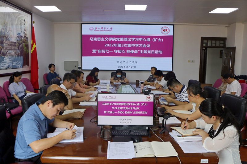 6月27日,学院2022年学院党委理论学习中心组(扩大)第3次集中学习会议在育才校区文二楼北楼506会议室召开。会上,4位领导老师、支部书记分别围绕习近平总书记在考察中国人民大学时的重要讲话和在庆祝中国共产主义青年团成立100周年大会上的重要讲话、结合工作学习实际谈学习体会,大家深刻领会了习近平总书记关于教育工作、青年工作重要论述的丰富内涵和精神实质,深刻认识了“两个确立”的决定性意义,表示要紧扣立德树人根本任务、全国重点马院核心任务,增强历史自觉,坚定文化自信,强化政治担当,汲取奋进伟力,以时不我待的紧迫感和使命感加快推进新时代和谐幸福美好马院建设。