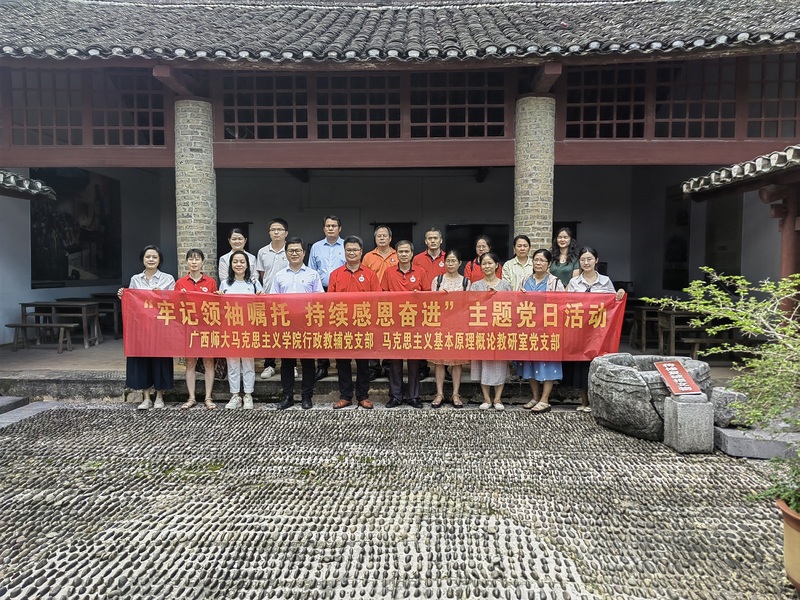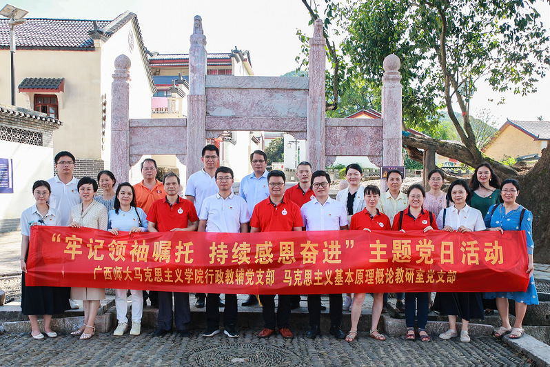 今年是党的二十大召开之年,是贯彻落实自治区第十二次党代会精神的重要一年,为激励广大党员铭记嘱托,感恩奋进,在中国共产党成立101周年之际,7月1日,马克思主义学院行政教辅党支部、马克思主义基本原理教研室及科研团队党支部的20余名党员教师来到桂林市八路军桂林办事处灵川县路莫村军需物资转运站纪念馆、灵川县潭下镇山口村开展“牢记领袖嘱托 持续感恩奋进”主题党日活动。学院党委负责人以普通党员身份参加活动。灵川县县长陈文彬亲临指导,灵川县接待办、潭下镇相关负责人陪同考察。