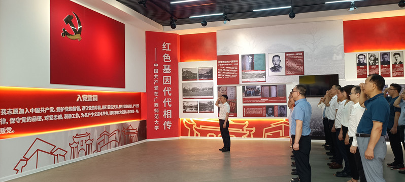 参观结束后,全体党员同志在学院党委主要负责人的带领下,在鲜艳的党旗下庄严地举起右手,重温入党誓词。同志们一致表示,要铭记历史、不忘初心、牢记使命,传承红色基因,赓续红色血脉,弘扬伟大建党精神,凝聚强大奋进量,为学院事业高质量发展作出新的更大贡献。