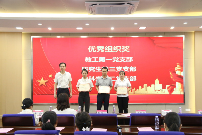 学院党委委员宣读2021~2022年度优秀共产党员、优秀党务工作者和先进基层党组织和“学习强国”积极分子表彰名单,进一步激励党员干部坚定理想信念,发挥先进典型和示范引领作用,奋进新时代、担当新作为。
