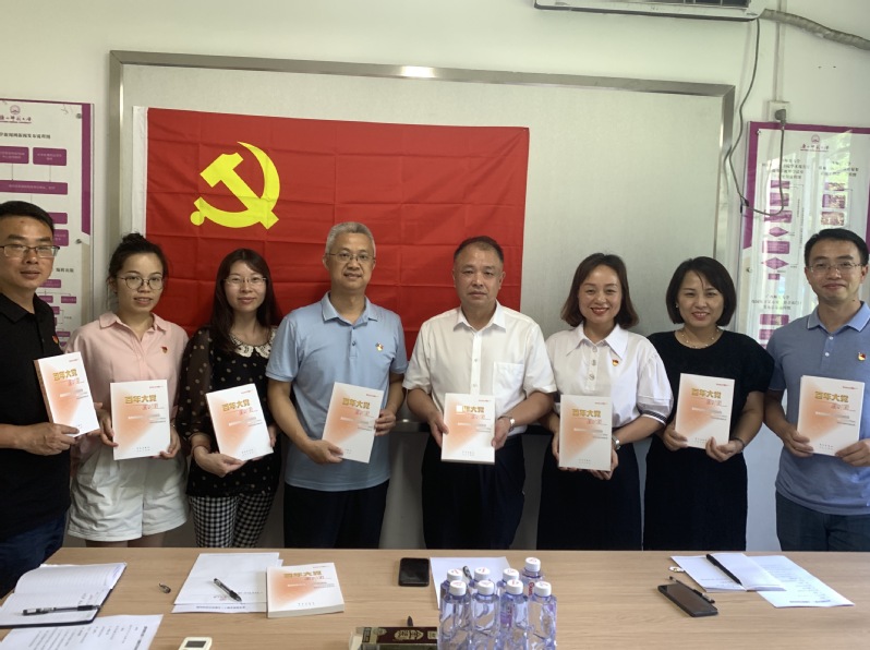 活动中,支部书记汤志华带领全体支部党员重温入党誓词,并为支部党员发放学习图书《百年大党面对面》。