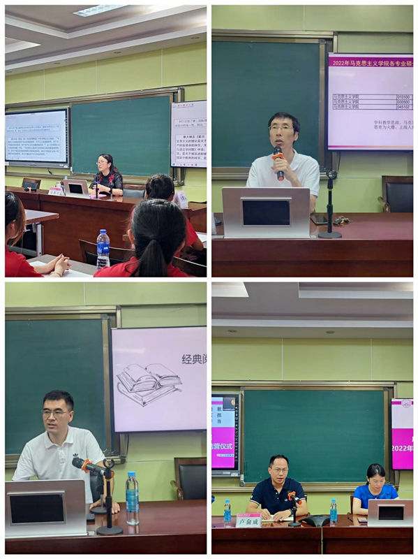 本次夏令营活动主要安排了专家学术讲座、校园参观考察、开展座谈交流等内容,采用线上与线下相结合的方式进行。7月14日,夏令营在育才校区第二文科综合楼609会议室举行开营仪式,马克思主义学院常务副院长代表学院对参加本次夏令营的大学生表示热烈欢迎,向营员们介绍了马克思主义学院的历史沿革、师资队伍、办学理念、学术成果、学科发展优势等,期望大家把参加夏令营作为照亮自己考研路上的一束光,在未来的人生路上要不畏艰险,攻坚克难,勇往直前。