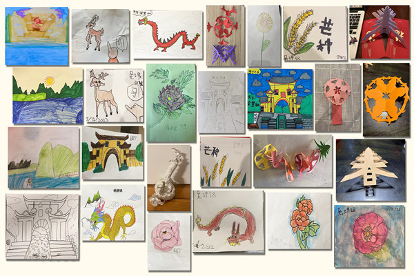 有趣的春节习俗,多彩的节气文化,独具风味的广西特色美食,奇特的桂林噶斯特地貌,美丽的阳朔风景,贵气的靖江王府,以及各种关于成语的小故事......来自美国欣欣教育基金会的高年级和低年级两个班级的同学们,在这为期十天的课程中,学习了中文、了解了中国文化、云游了广西桂林、知晓了新的成语故事。课堂上,学员们认真听讲,积极参与与老师的互动,课后学习热情不减,纷纷以绘画、音频、视频等形式提交作业。营员畅静姝表示非常感谢有这个机会能够了解广西,在这次的网上营里,秀美的桂林山水给她留下了深刻的印象,她特别喜欢老师们教唱的腊月歌,教授的剪窗花。如果有机会,她想拿起相机去拍象鼻山,走进神奇溶洞,在漓江欣赏两岸风光,穿上壮族服装学唱民歌......
