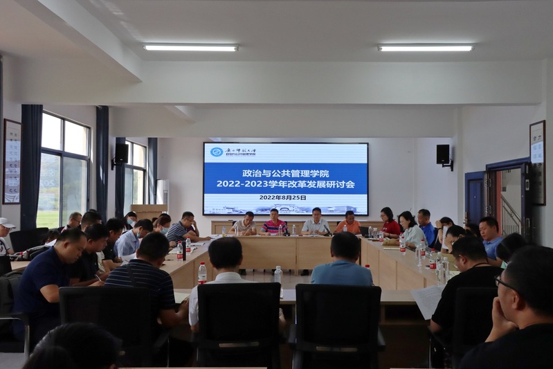 8月25日,政治与公共管理学院召开2022-2023学年改革发展研讨会,研究讨论新学年学院的发展目标、改革思路及落实举措,学院领导班子及全院教职工参加会议,会议由学院行政负责人主持。