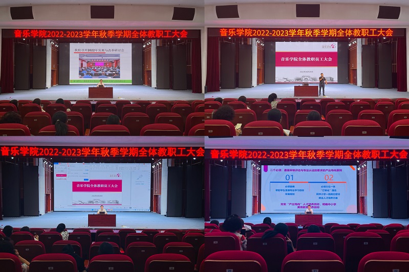召开本学期第一次全体教师大会,领导班子成员就各自分管的工作分别作了布置,充分传达了学校发展与改革研讨会会议精神,以贯彻落实“强院兴校”战略思想为工作主线,对新学期学科建设、疫情防控、教学科研、学生管理、艺术实践等工作进行了部署安排,要求全体教师凝心聚力确保新学期各项工作落实落地落细。