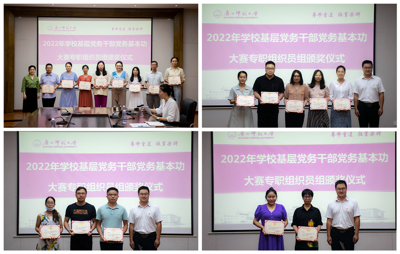 为2022年学校党务干部党务基本功大赛专职组织员组获奖选手颁发了荣誉证书