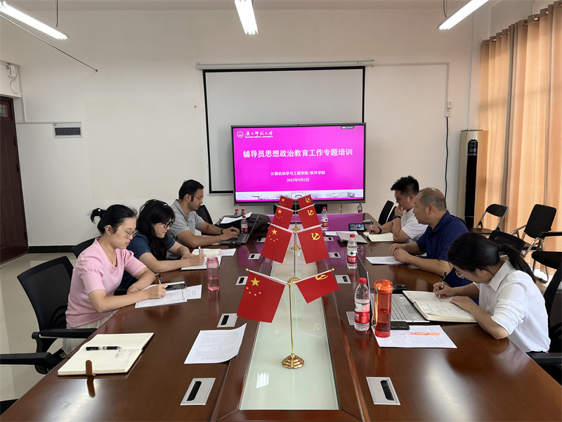 9月2日,计算机学院在雁山校区行政南楼614会议室召开迎新工作布置会暨辅导员思想政治教育工作专题培训会,学院党委主要负责人参会并开展培训,会议由学院党委副书记主持,全体专职辅导员与会。