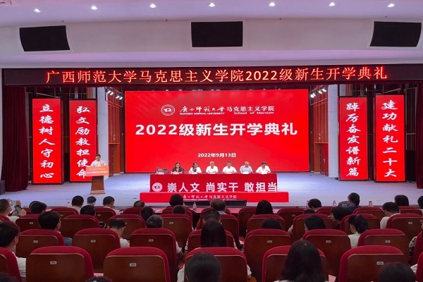 雁山脚下丹桂飘香,相思江畔秋风送爽。9月13日,马克思主义学院2022级新生开学典礼在雁山校区音乐学院三楼综合厅举行。学院党政领导班子成员、全体教职工以及2022级全体本科生、硕士研究生、博士研究生500余名师生参加典礼。学院党委相关负责人主持典礼。