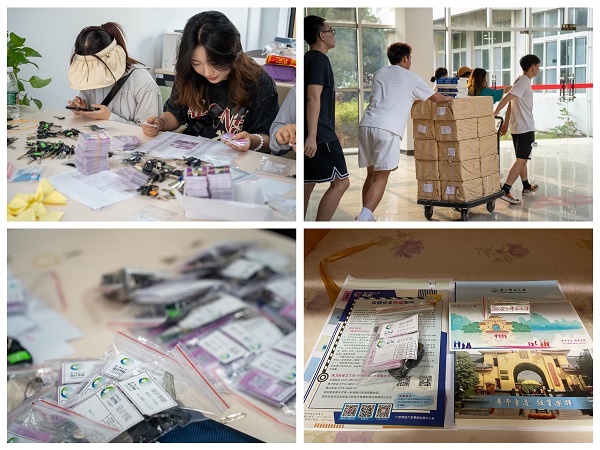不同于以往,今年的迎新工作在疫情防控常态化背景下的“无接触”式迎新报到工作,学院党委高度重视,多次召开辅导员会议统筹规划,真正做到了“思想上高度重视,责任上压实到位,措施上严谨有序”,新生辅导员严格落实新生健康情况监测和报到审批工作,严格把好新生入校入门关,营造出校园生活的“安全晴空”。学院全力做好各项迎新准备工作,为志愿者们进行了细致的工作培训,准备了充足的防疫物资。新生辅导员带领助班和学生党员、学生干部们为新生提前领取了上万册的教材,将宿舍的钥匙和饭卡、防疫物资等必备用品提前分装好,精准放至每位新生的宿舍桌面上,为新生营造良好的学习生活环境。