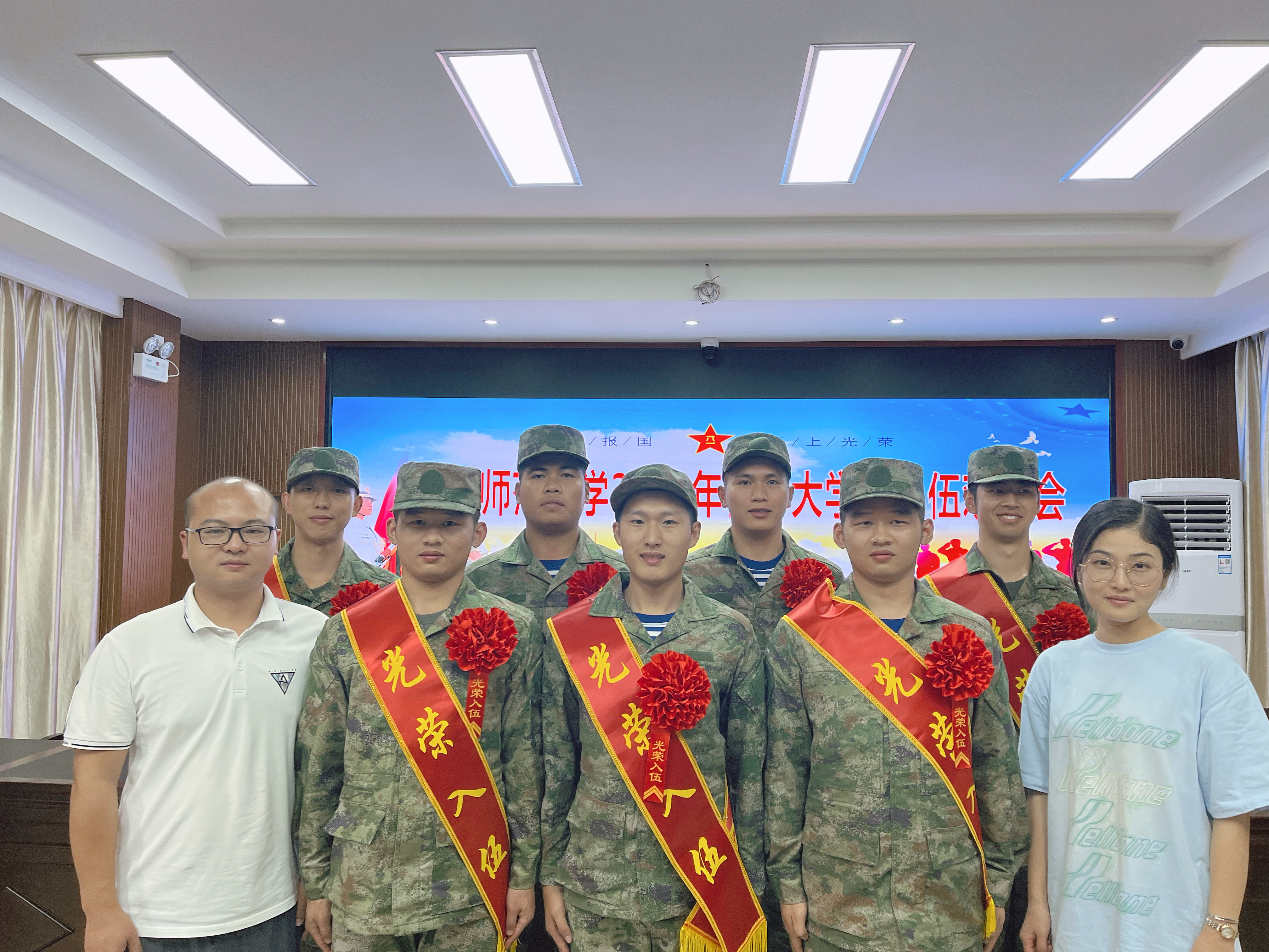 9月15日,我校2022年春季大学生入伍欢送仪式在桂林市秀峰区武装部举行。校党委副书记旷永青、武装部负责人、学生工作部(处)负责人、入伍学生辅导员和从学校入伍的大学生参加了仪式。2022年秋季征兵工作中,体育与健康学院在预征中超额完成学校征兵工作任务,最终在学校和家庭所在地征兵入伍19人,其中18人为毕业生,1名为在校生,直招士官1人。