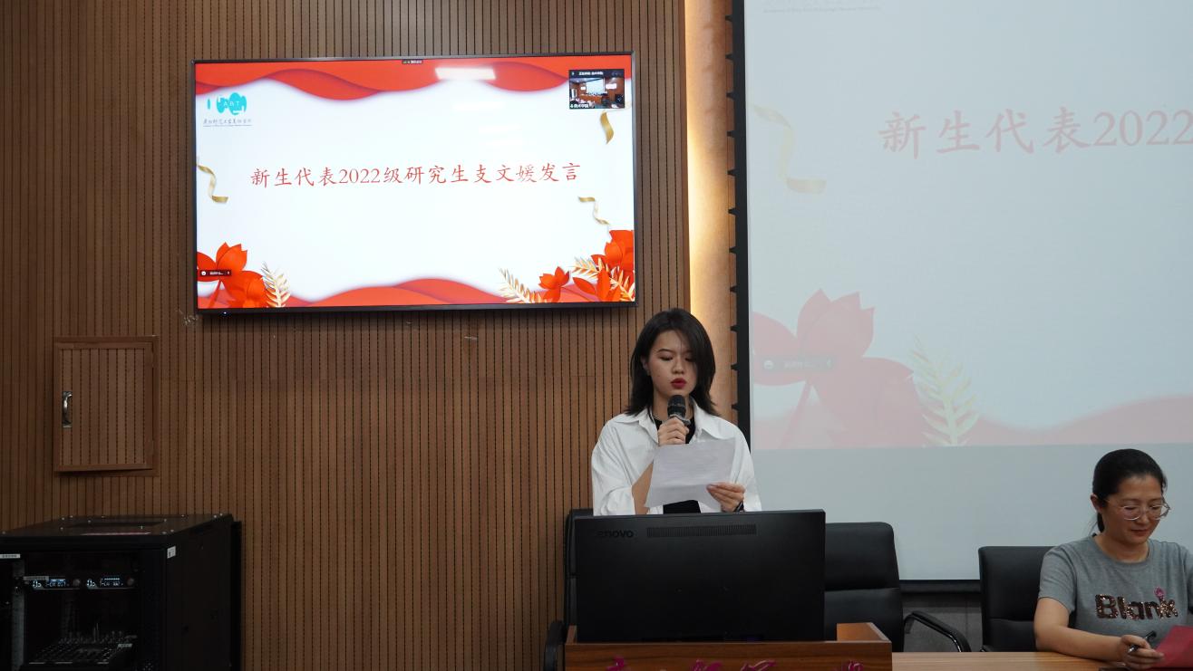 随后,专业教师代表高献敏老师、老生代表2019级书法学陈若鹏、2022级本科新生代表雷嘉欣、研究生新生代表支文媛依次上台进行发言,表示接下来将与每位师大人一起乘风破浪,迎接新的挑战,用实际行动彰显美术学院新面貌。