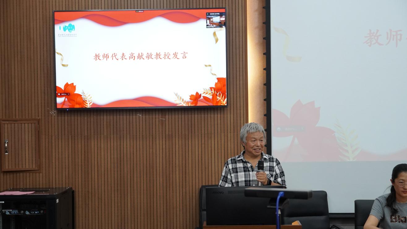 最后,学院党委负责人为全体师生讲述了一堂生动有趣的开学教育课,并引导师生学习伍道纯教授的先进事迹,希望同学们继续向他学习“自我奉献、无私精神”的品质,争做新时代优秀大学生。并再次表达了学院对于2022级新生们的欢迎,希望2022级新生在新的挑战中、在新的征程上,擦出新的火花。