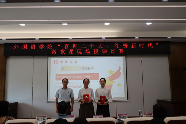下一步,外国语学院党委将本次比赛的优秀微党课编制成系列具有示范引领作用的微党课视频,通过学院官网、学院微信公众号展播和学院理论宣讲团巡回宣讲等形式进行宣传推广。激励大家深入贯彻落实新时代党的建设总要求,全面提升学院党建工作质量,充分发挥基层党组织的战斗堡垒作用,勇当先锋、争做表率,以实际行动迎接党的二十大胜利召开!