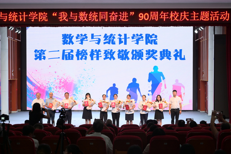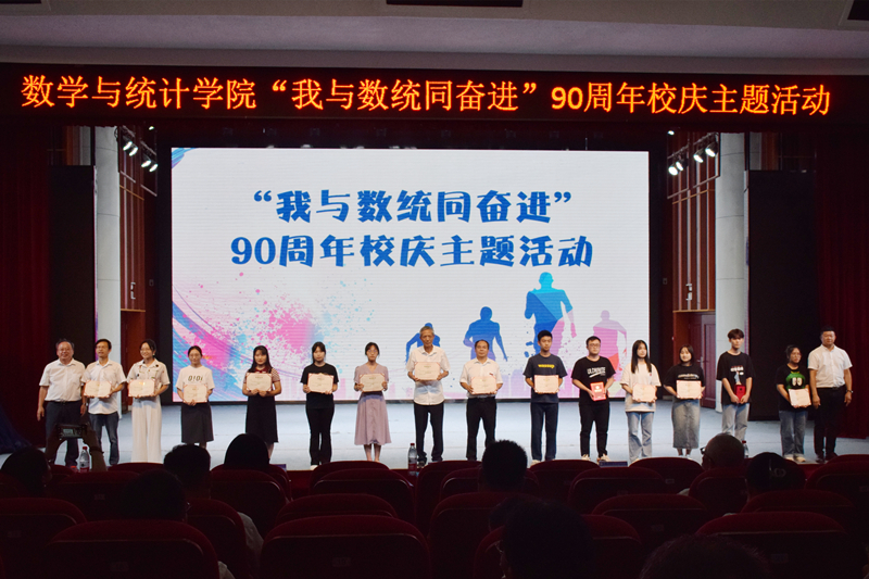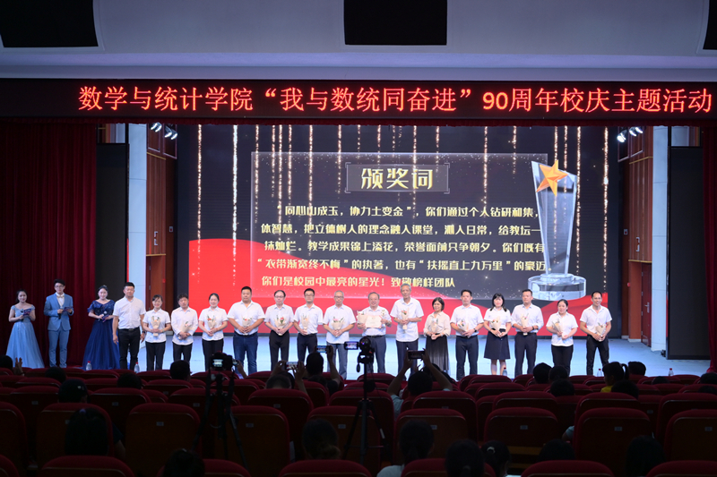 9月28日,数学与统计学院在音乐学院三楼报告厅举行“我与数统同奋进”90周年校庆主题活动,庆祝即将到来的90周年校庆,揭晓学院院训、办学精神、吉祥物,并为学院第二届“榜样人物”颁奖。学院领导班子、全体教职工和学生代表参加本次活动。