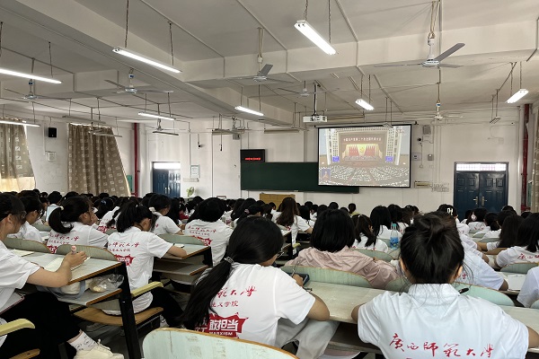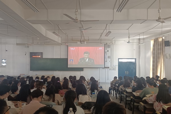 2022级本科生在雁山校区文四304教室收看大会盛况