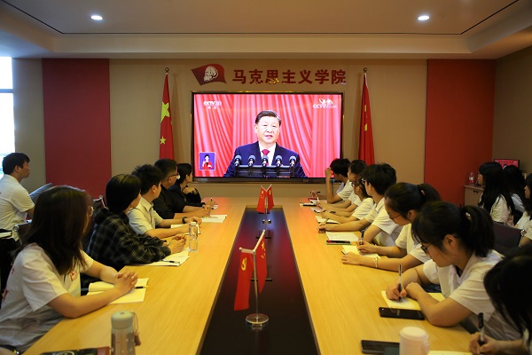 2020级、2021级硕士研究生在雁山校区文四302收看大会盛况