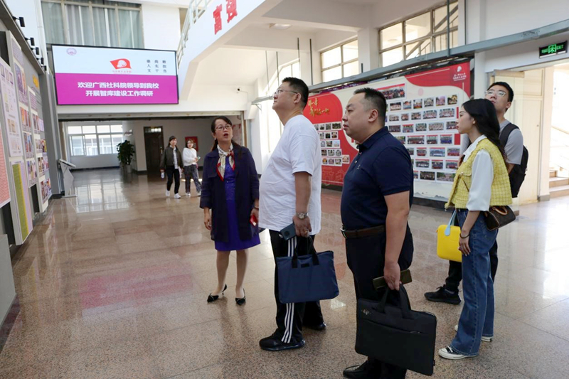 社科处相关负责人介绍了学校在打造广西高校智库平台的做法,希望在打造省级智库基地、培育微型智库,与决策部门沟通方面能加强交流合作,帮助社科处做好有关部门的供需对接。