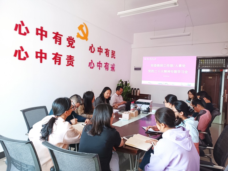 为进一步深入学习贯彻党的二十大精神,切实把思想和行动统一到党的二十大精神上来,奋力推动新时代学校人才人事工作新局面,10月18日,党委教师工作部/人事处在雁山校区569会议室召开党的二十大精神专题学习会。党委教师工作部/人事处全体干部参加会议,会议由党委教师工作部/人事处主要负责人主持。