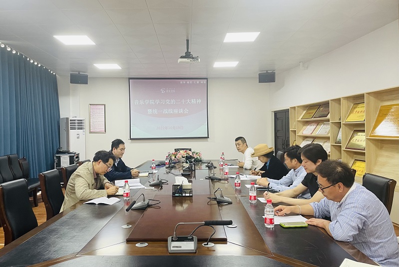10月19日,音乐学院于音乐楼B209会议室召开统一战线座谈会,学院党委负责人、党委相关负责人,各民主党派教师、党外知识分子、统战员参加会议,共同学习中共二十大报告精神,绕报告内容谈感悟、说认识。