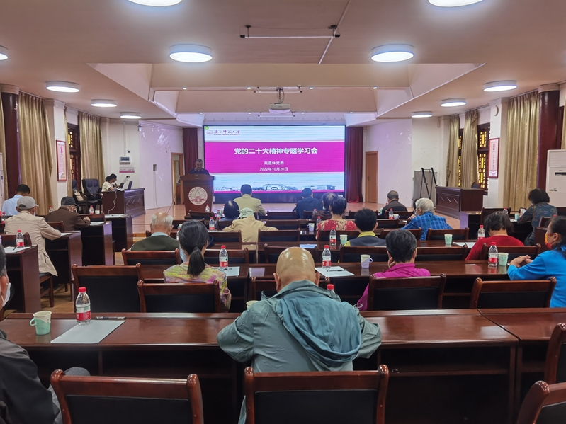 为进一步深入学习贯彻党的二十大精神,深化对党的二十大精神内涵实质的理解和思考,切实把思想、认识和行动统一到学习贯彻党的二十大精神上,10月20日,离退休党委在王城、育才校区召开了“党的二十大精神专题学习会”。离退休党委委员、纪委委员、党支部书记、支部委员和自管组长参加了学习会。