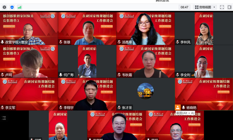 10月21日,政治与公共管理学院通过腾讯会议召开了在研国家级课题结题工作推进会,学院党委主要负责人、学院行政主要负责人以及所有在研国家级课题的负责人参与会议。会议由学院分管科研工作的行政相关负责人主持。