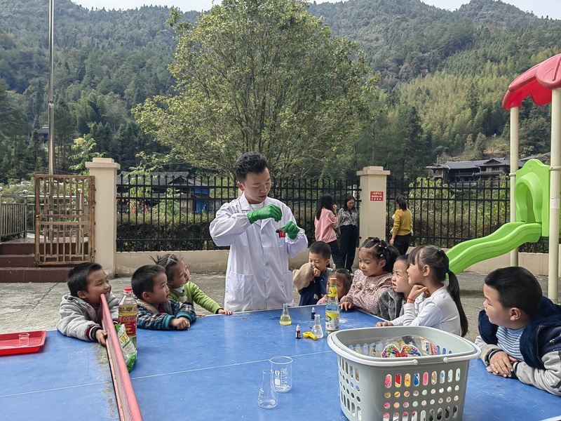 化学与药学学院小草科普社团给孩子们演示趣味化学实验