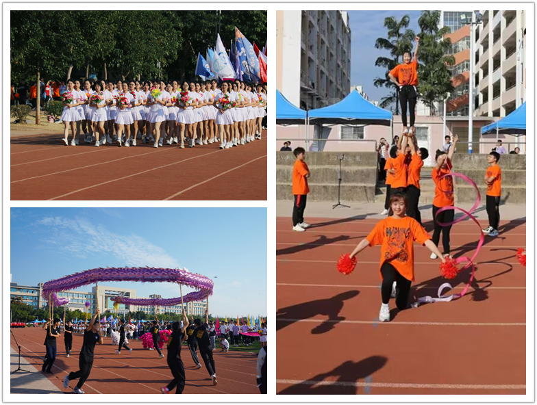 入场仪式上,彩旗队、鲜花队展示了两院学子良好的精神面貌,两院教职工方阵入场时,现场观众掌声阵阵,欢呼声不绝于耳。体育与健康学院龙狮队、马龙啦啦队友情助阵,带来了精彩的表演。两院学子组成的青春舞方阵,展现了当代大学生的青春与活力。开幕式上,数学与统计学院党委负责人回顾两院同根同脉、守望相亲、共铸辉煌的发展历史,展望了两院共创高校同脉、学科互融的美好愿景。接着计算机科学与工程学院/软件学院党委负责人宣布开幕,田径运动会、趣味运动会拉开了竞技的序幕。在教职工趣味运动会赛场,蒙眼敲锣、蚂蚁搬家、一圈到底等运动项目有序开展,现场充满欢声笑语,田径运动会赛场不时传来运动员打破赛会记录的喜讯。