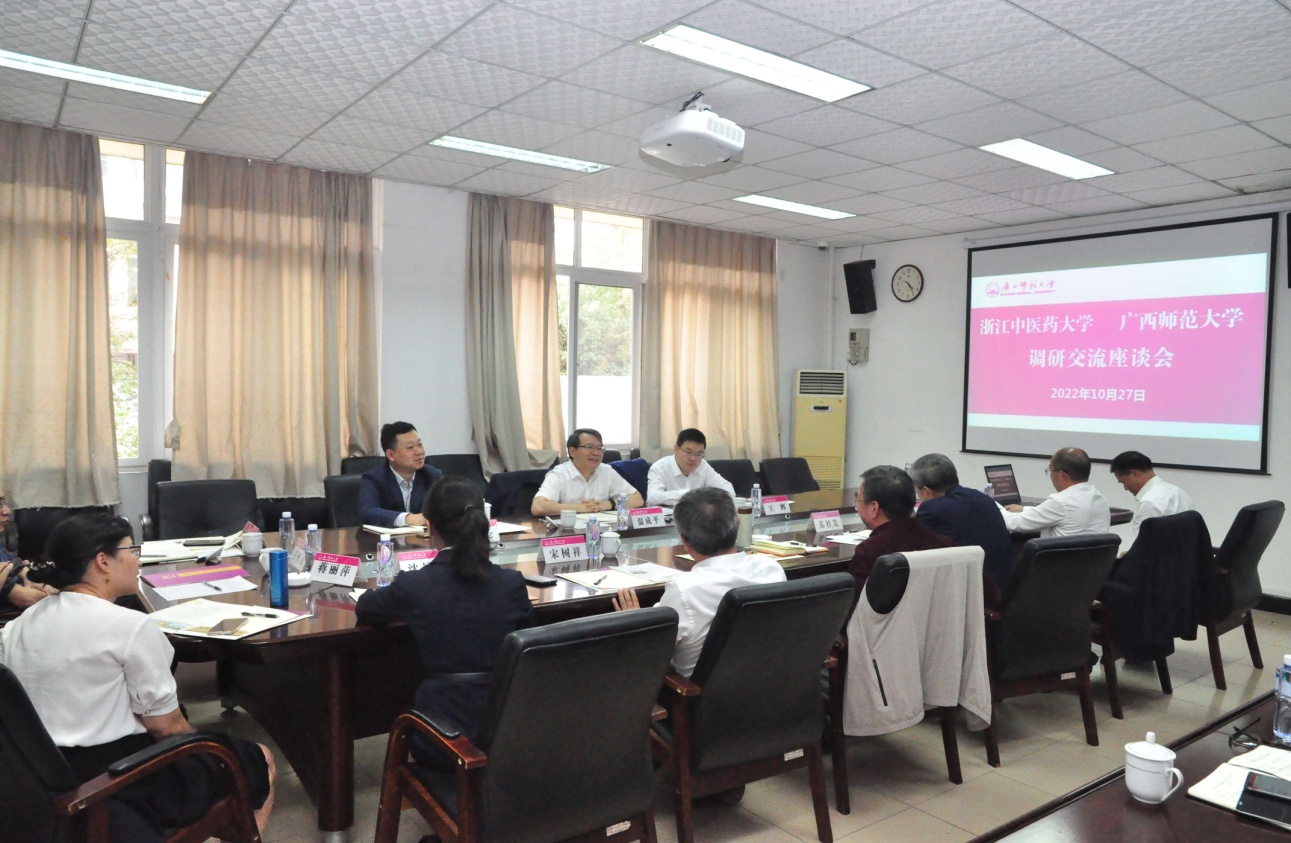 10月27日,浙江中医药大学温成平副校长一行来我校开展交流合作,我校苏桂发副校长、省部共建药用资源化学与药物分子工程国家重点实验室主要负责人、化药学院主要负责人及科技处主要负责人等参与交流。