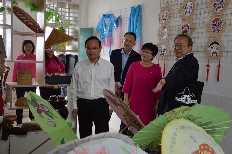 草坪回族希望小学高度重视校园文化建设,重视铸牢中华民族共同体意识,促进各民族交往交流交融。在学校小小石榴讲解员的指引下,黄海波一行参观了民族文化长廊、红石榴广场、红石榴水磨坊、红石榴民族文化展览馆。