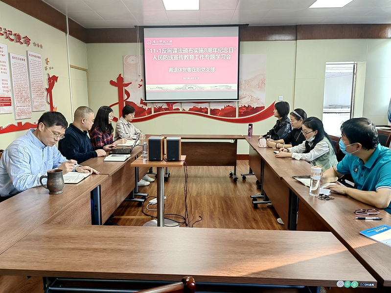 为切实加强反间谍宣传教育,提升党员干部的国家安全意识,在《中华人民共和国反间谍法》颁布实施8周年之际,离退休党委在职党支部于10月31日在育才校区离退休党群活动室开展人民防线宣传教育工作专题学习会。