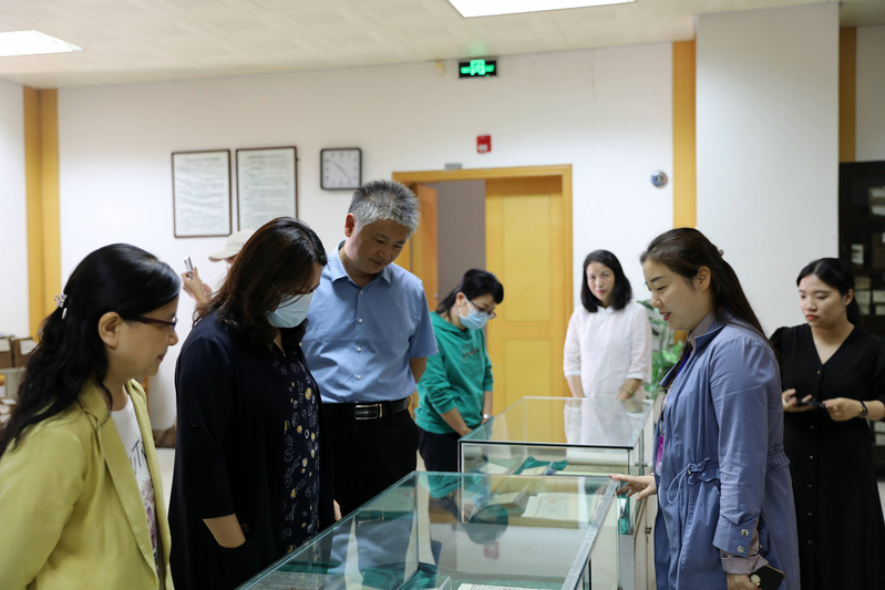 随后,专家组一行实地考察了图书馆古籍书库和古籍修复室,考察了我馆古籍存藏情况和保护条件,以及修复环境和修复设备。作为全区四家“全国古籍重点保护单位”中唯一的一家高校图书馆,专家组对我馆的古籍保护工作给予了充分肯定,同时提出要加强古籍数字化建设、继续完善古籍保护条件等意见和建议。