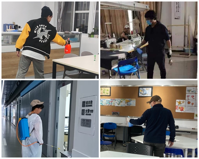 11月20日,学院分管实验室和行政副院长靠前指挥,组织师生身穿防护服、携带专业消毒弥雾机,采用雾状喷洒的方法,严格按照标准规范操作,对学院进行全方位、无死角消毒。涉及场所包括行政办公室、实验室、教学楼、会议室等重点区域,并重点对桌椅、门把手、楼道、卫生间、电梯轿厢、垃圾桶等关键部位实施密集消毒。整个消杀持续近3个小时,过程有条不紊、规范高效。