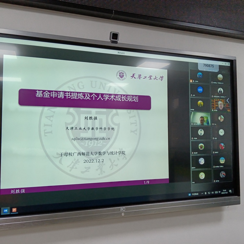 为顺利开展和有效推进学院2023年度国家自然科学基金申报工作,有效提升学院项目申请书的整体质量,12月2日,数学与统计学院通过采取“线上线下”相结合的方式举行“2023年度国家自然科学基金申报经验分享与交流研讨会”。会议邀请了四川大学张伟年教授、天津工业大学刘胜强教授作专题辅导报告,分享项目申报经验并开展交流与研讨。会议线下会场设置在育才校区应用数学中心206会议室,会议由广西师范大学党委常委、副校长黄文韬教授主持,学院领导班子、校科学技术处分管领导及相关科室工作人员、学院一线教师共计70余人参加了本次会议。