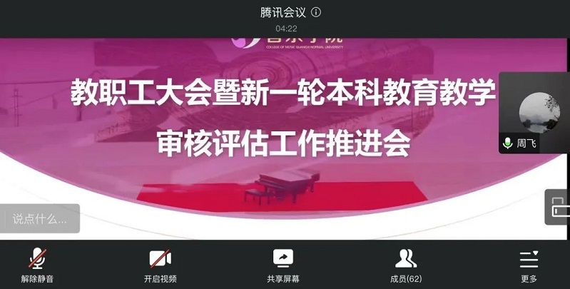 为深入学习贯彻落实党的二十大精神,加快推进学院本科教育教学审核评估工作的步伐,近日,音乐学院召开本科教育教学审核评估工作推进会,本次会议以学习贯彻党的二十大精神,齐心协力迎评促建为主题,以线上线下相结合的方式进行。会议由学院党委负责人主持,全体教职工参加会议。