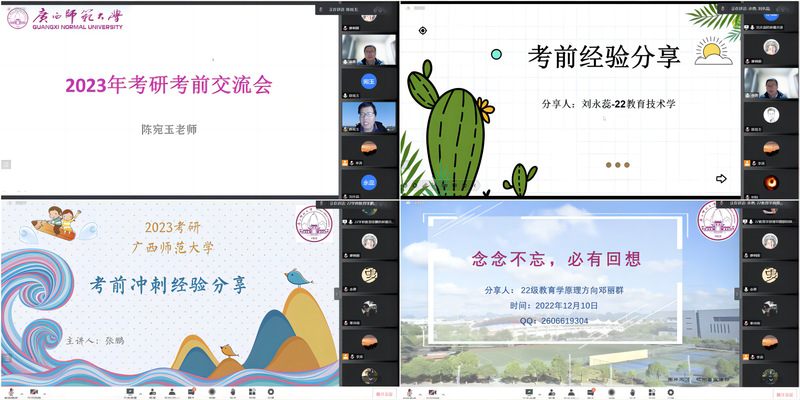 时光飞逝,转眼间2023年研究生考试备考已进入最后冲刺阶段,为营造良好考研氛围,发挥朋辈榜样力量,充分调动2023届毕业生考研积极性并深化对研究生考试规则的认识,12月10日,教育学部通过腾讯会议线上举办考研动员会,本次会议由教育学部2023届本科毕业生辅导员主持,教育学部党委主要负责人、学生工作负责人、本科生班主任、学部2022级硕士研究生代表出席本次会议并讲话。