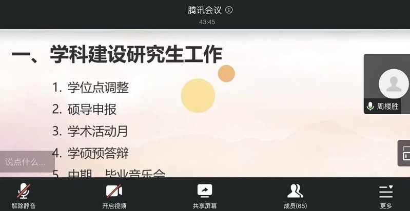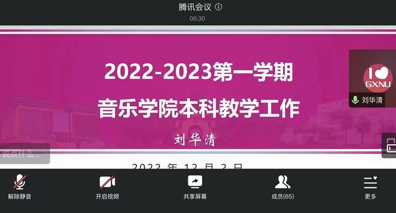 为深入学习贯彻落实党的二十大精神,加快推进学院本科教育教学审核评估工作的步伐,近日,音乐学院召开本科教育教学审核评估工作推进会,本次会议以学习贯彻党的二十大精神,齐心协力迎评促建为主题,以线上线下相结合的方式进行。会议由学院党委负责人主持,全体教职工参加会议。