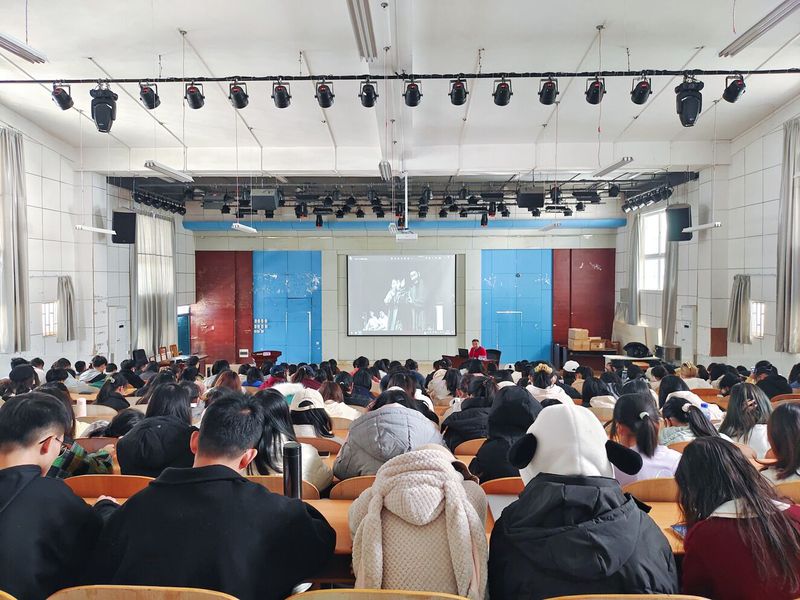 讲座中,李晏以时间为线索,结合其所拍摄的剧照、幕后照片,梳理中国戏剧历史发展脉络,引领观众一同回顾以1982年林兆华导演拍摄的《绝对信号》为开端的中国当代戏剧历史40年。李晏言辞恳切生动,引人入胜,以不同时间节点的照片为切入口,将中国当代戏剧百花齐放、壮丽宏伟的历史娓娓道来。其中,一张以艾滋病为主题创作的戏剧照片尤其引人注目。据李晏先生描述,该照片中戏剧创作于1994年,为了向大众普及艾滋病的相关知识,改变大众对艾滋病知识贫乏的文化现状,在不提及艾滋病相关字眼的前提下,幕后人员创作了这场暗喻艾滋病隐患无处不在的戏剧作品。讲座最后,李晏先生表达了希望更多的戏剧能引入校园、引入广西,并倡导同学们多加关注戏剧、观看戏剧演出,也期望桂林市、学校能够多开展相关活动,为同学们观赏戏剧搭建高质平台。
