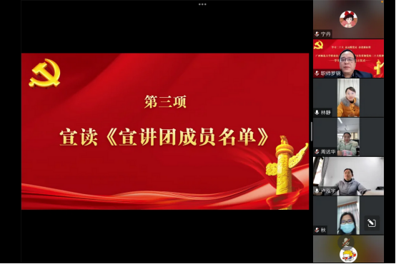 为深入学习贯彻党的二十大精神,充分发挥学生骨干的示范引领作用,带动广大青年学生全面学习党的二十大精神,夯实基层党建工作。1月6日,职业技术师范学院通过腾讯会议举行了学习宣传贯彻党的二十大精神学生骨干宣讲团成立仪式。学院党委书记、党委副书记 纪委书记、专职组织员、研究生党支部书记、辅导员代表以及学生骨干宣讲团成员100余人参加仪式。