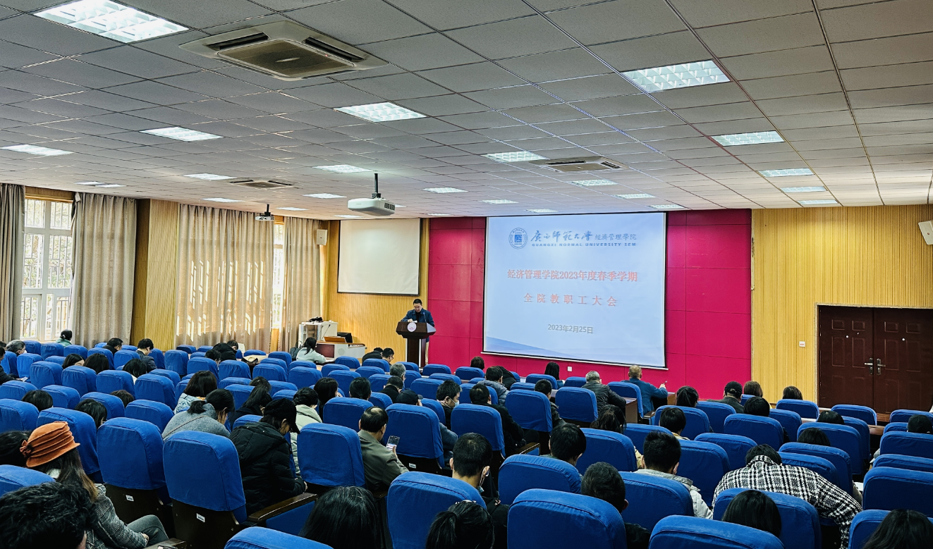2月25日下午,学院在育才校区第二理科楼111会议室召开新学期第一次全院教职工大会,各位分管领导按照上午党政联席会形成的研讨共识把新学期工作谋划向全院教职员工传达。学院负责人强调,本学期乃至本年度的工作重心应该围绕三个方面的工作来开展:一是以理论经济学博士点申报为重点推进学科建设,这是今年工作的重中之重,申报材料要经过充分打磨,仔细斟酌,凝练学科专业特色,争取实现学院老师多年的博点梦。二是以评促建做好各类评估准备工作。首先要高度重视即将到来的教育部本科教学评估专家组入校,然后要提前准备经济学国家级一流本科专业的验收工作。三是积极做好BGA国际认证工作,走稳国际化办学道路,不断彰显学院的办学特色,提升品牌效应。