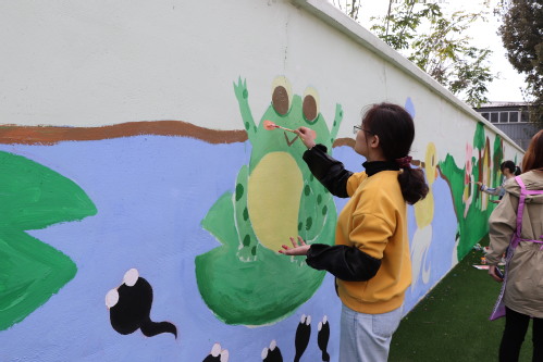 “美育艺行”实践团队开展艺术墙绘实践