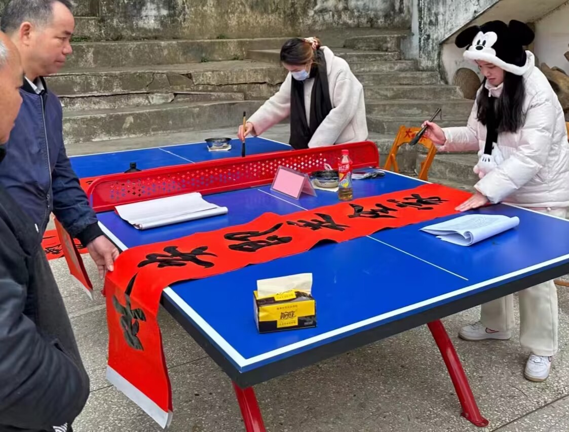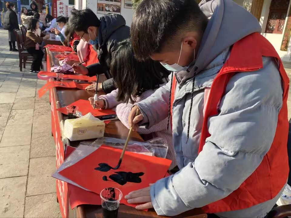 寒假期间,分布在各地的30余名学子利用自身书法艺术专长,前往广西区内各地及贵州、江苏、山东、河南等省份,以志愿撰写春联、“福”字和进行传统书法艺术教育的形式开展“送传统书法文化进乡村、进街道、进学习、进单位”的实践服务活动,大力弘扬中华民族传统文化,营造祥和、喜庆的节日氛围。