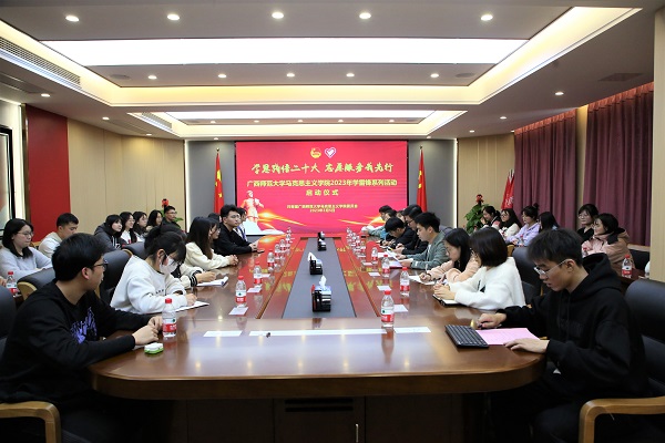为深入学习贯彻党的二十大精神,全面落实习近平总书记关于深入开展学雷锋活动的重要指示精神,团结带领广大青年志愿者弘扬“奉献、友爱、互助、进步”的志愿精神,在第60个“学雷锋纪念日”、第24个“中国青年志愿者服务日”来临之际,3月5日,马克思主义学院在雁山校区起文楼362多功能会议室举行2023年学雷锋系列活动启动仪式。学院党委副书记、团委书记、全体专兼职辅导员和学院青年志愿者代表参加此次活动。