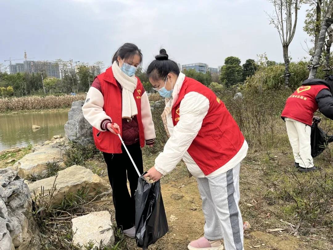 发扬志愿精神,争做实践先锋。覃群婷同志与当地大学生们一起走进邑公塘湿地公园参与旅游景点保护志愿服务活动,一起为旅游资源保护和创建文明城市贡献青春力量。
