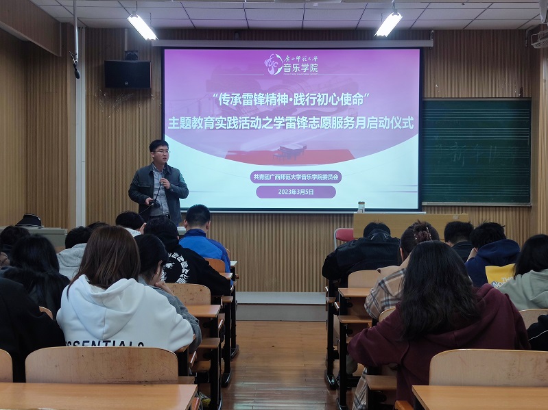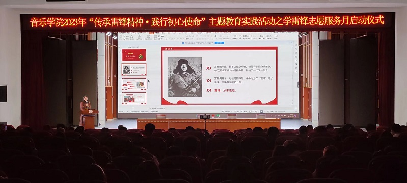 为深入学习宣传贯彻党的二十大精神,贯彻落实习近平总书记关于学雷锋志愿服务的重要论述,尤其是近日对深入开展学雷锋活动作出的重要指示精神,3月5日,音乐学院2023年“传承雷锋精神·践行初心使命”主题教育实践活动之学雷锋志愿服务月启动仪式在音乐楼三楼综合厅顺利举行。