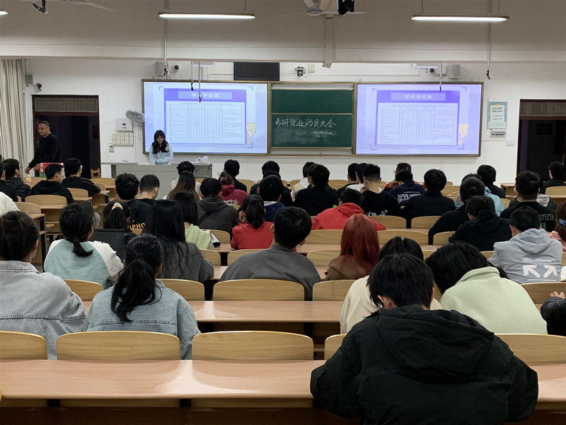 为贯彻落实党的二十大提出的“高质量充分就业”的决策部署,进一步推进学院学风建设,帮助准毕业生认清就业形势,熟悉就业政策,把握就业机会,切实抓住准毕业生考研就业关键期,3月13日,计算机科学与工程学院/ 软件学院于理科楼2-201召开“一生一策规划未来,全力以赴考研就业”主题分享会。蓝桥学院相关负责教师、2020级专兼职辅导员及全体2020级本科生共计300余人参加会议。2020级专职辅导员主持分享会。