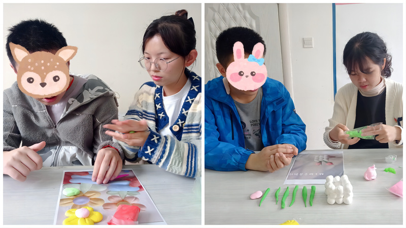 活动开始前,支部成员们鼓励大龄心智障碍人士们勇于挑战,接纳自我,用积极乐观的心态面对生活和学习。用爱关怀、用心疏导、用情陪伴,和大龄心智障碍人士们一起度过了一个美好的周末。实践动手活动在《听我说谢谢你》等手语表演后开始。在党员的陪伴和示范下,开启了有趣的捏超轻粘土活动。