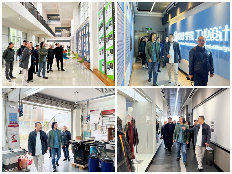 座谈会前,在学院负责人的陪同下,设计与艺术学院专家一行参观了学院一站式办公平台、文化墙以及环境设计、工业设计等实验室,调研了学院中心建设、实验室建设以及教学环境等空间建设的思路。